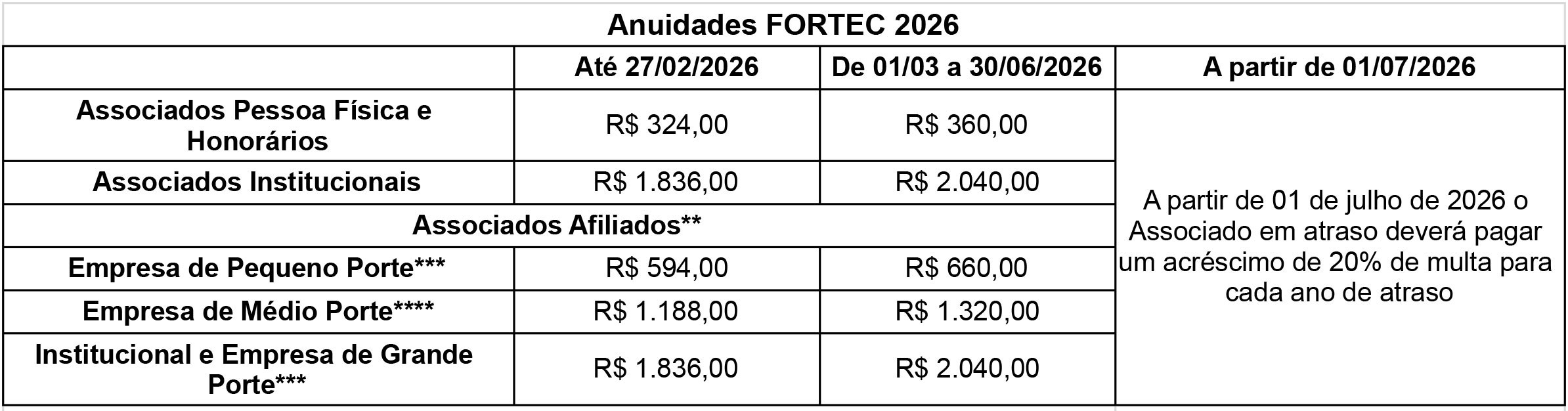 Anuidades FORTEC 2026